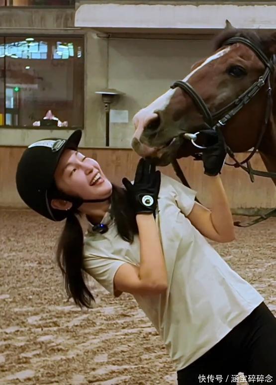 随后,李冰冰又换上了一套白色短袖搭配黑色长裤的穿搭,同样运动感十足,和马儿互动,显得十分有趣。